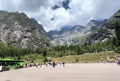 达瓦永措位于四川省阿坝藏族羌族自治州小金县康热街与210省道交叉口西50米,月亮般明净的海子,海拔4250米,三面环岩峰,湖面面积约为120亩,左侧山体上遍布着低矮灌丛,后面是从湖面拔地而起的龙脊山,山顶堆满积雪,山腰处有现代冰川。