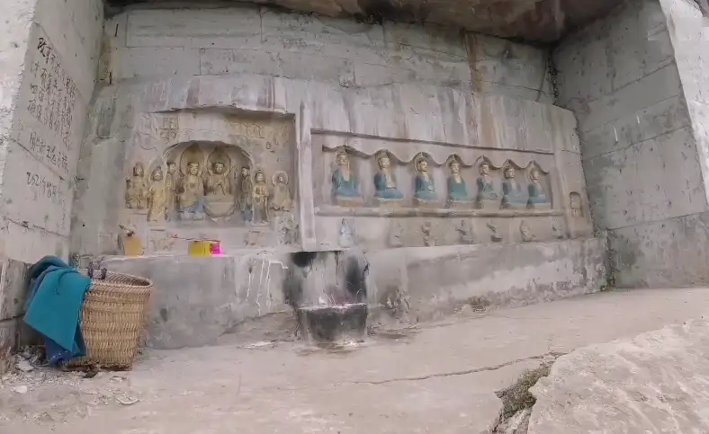 王坚纪功碑为一尊高5.6米,长5.72米面西而立的巨石,过去,因其正壁中刻有千手观音造像和浮雕佛教故事,故前人习以“千手观音”称之。王坚纪功碑为国家二级文物,是钓鱼城抗战后期守城军民为了纪念王坚的战功而刻下的“纪功碑”,在王立开城降元之后,因为该碑上刻有斥骂元朝统治者的文字,才被凿毁,刻上了佛教故事。