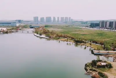 俯视广场,左伏龙,右卧凤。青龙岗蜒,黄龙蟠卧,草木葱绿,繁花似锦。前方人工音乐喷泉,外伴人工半月池,连着洋澜湖,水天一色,远山如黛,云水渺渺,亭台楼阁,游人织锦,好一幅人文景观与自然景观“天人合一”的优美图景。让人心旷神怡。浮想翩翩。