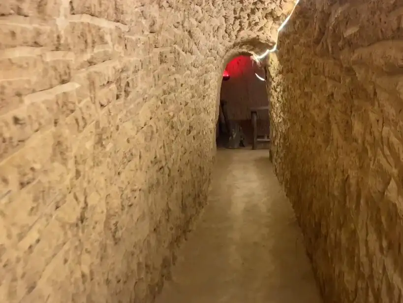 藏兵洞,位于土古洞传统村落老宅院后窑洞内。因地制宜,层层递进,弯弯曲曲,时断时连,洞洞相连,洞内蜿蜒曲折,左右分叉,神秘莫测,犹如迷宫(有的洞顶坍塌,多处被土掩盖,洞内到底如何,无从谈起)。清理出来近1500米(但这并不是全部)的坑道里,有20多间土室,可以住人,有小型粮仓、厨房,坑道墙壁上有小龛,俗语灯台,用以在洞内照明。设有四处岀口可直达村外,出入方便。还设有对外观察孔,既可防守,又可观察敌情。攻防兼备,独具匠心。