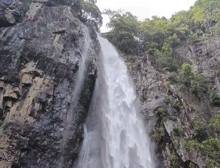 白水际瀑布上游集雨面积20多平方公里,平均水流量0.68立方米/秒,四季不竭,终年水帘垂挂,云蒸雾泽,古木参天,石奇苔鲜,为当地罕见瀑布景观。