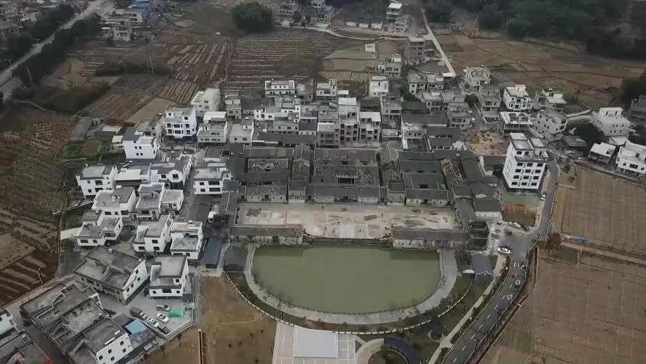 九栋十八井大宅院始建于1660年,至1818年竣工,历四代人共158年,建筑用地共70多亩。“因为这处围屋建成横三栋、纵三栋,相乘为‘九栋’,院落每三栋各有六口天井,加起来为‘十八井’,所以又叫‘九栋十八井大宅院’。”
