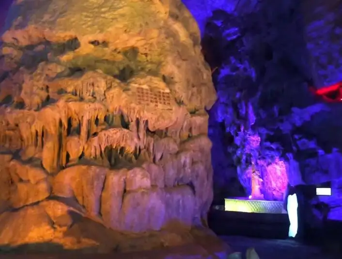 善卷洞溶洞景观巧夺天工,绚丽多彩,千奇百态,分上、中、下三层,旱洞与水洞相结合.洞中玲珑剔透的钟乳石形态多异,有的象栩栩如生的飞禽走兽,有的象生机勃勃的各类植物,有的如日月运行、江河奔腾…乃大自然鬼斧神工的杰作.其中尤以“洞中有河,河可通舟,船在水中行,桨朝天上撑.”堪称一绝。