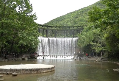 龙潭景区全长2.6公里,有著名的官潭、雷潭、闪潭,大小相连300余个。山谷依次排列着官潭、闪潭、雷潭、白龙潭和黑龙潭。官、闪、雷潭号称三潭。官潭象一把绿色琵琶,且清澈见底,随着水势的渲泻涌出千万条黑色和红色的小鱼,有时会涌出奇珍的娃娃鱼,这是千载难逢的涌鱼奇观。